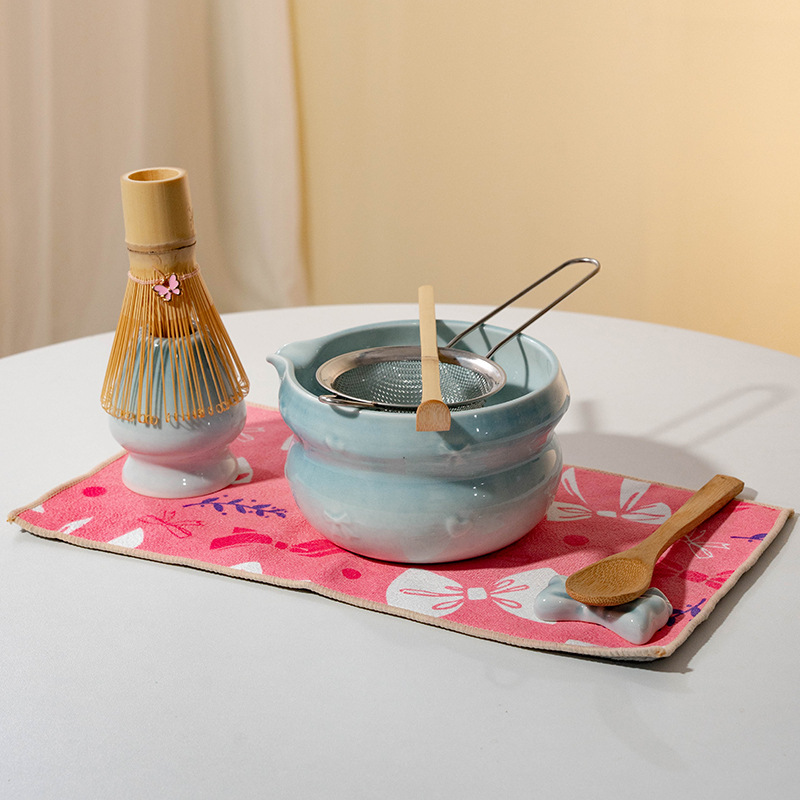 A minimalist chasen and ceramic holder that preserves whisk shape while elevating your matcha ritual